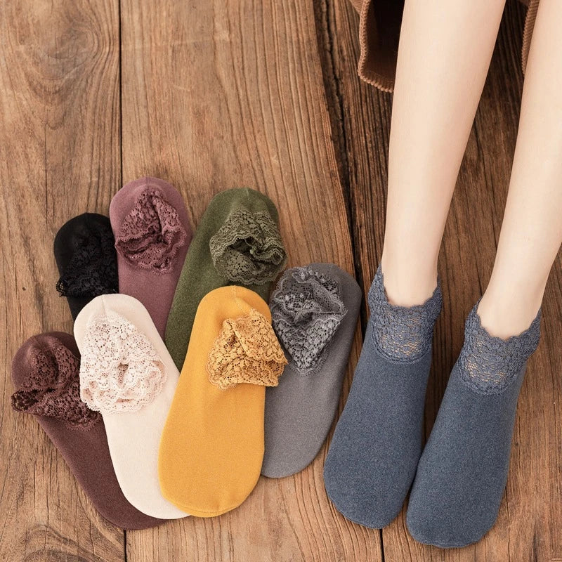 Our Women Warm Socks have a beautiful lace design, both sweet and stylish as if a circle of flowers wrapped around your ankle, so you can also release the charm these warm ankle socks are a nice accessory to match your winter outfits
